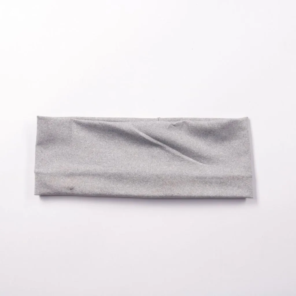 Трикотажная повязка на голову без указания бренда, выполнена в сером цвете и хорошо тянется. Подойдёт для занятий спортом, дома или чтобы убрать волосы от лица. Легко стирается и занимает минимум места.