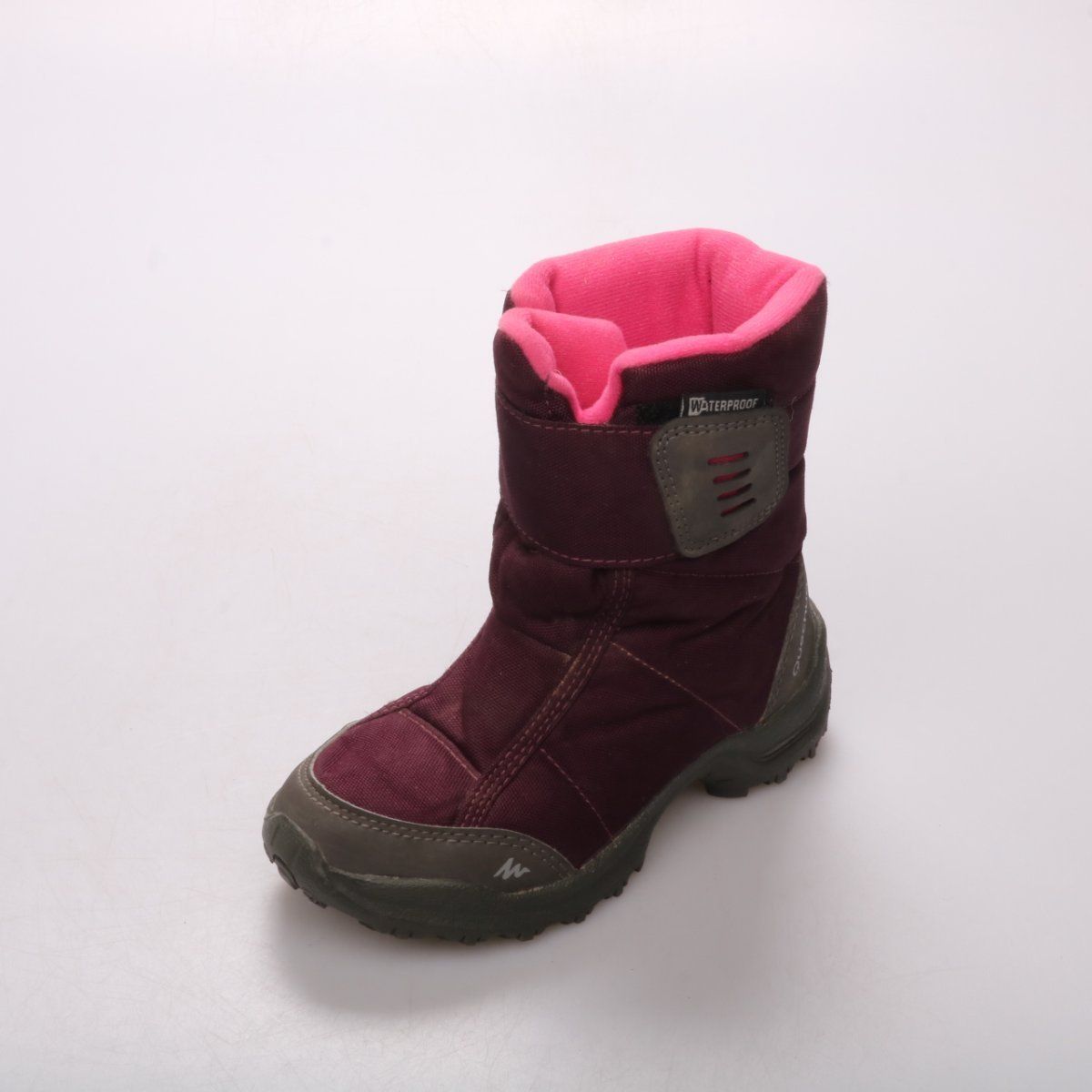 Детские зимние сноубутсы Decathlon с водоотталкивающим верхом и утеплённой розовой подкладкой. Подойдут для прогулок в снег и слякоть в холодную погоду. Рифлёная подошва обеспечивает хорошее сцепление и меньше скользит.