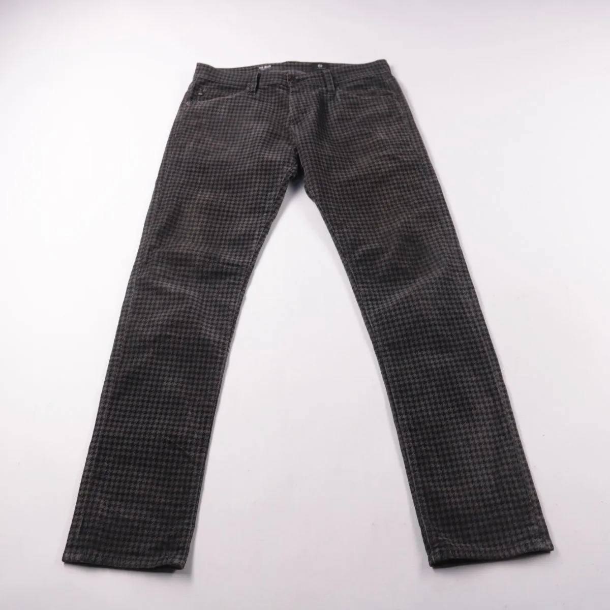 Мужские брюки AG (Adriano Goldschmied) в мелкую клетку, выполнены из хлопкового материала с добавлением эластичных волокон. Подойдут для повседневной носки и в офис в стиле casual. Ткань чуть тянется и комфортнее садится по фигуре.