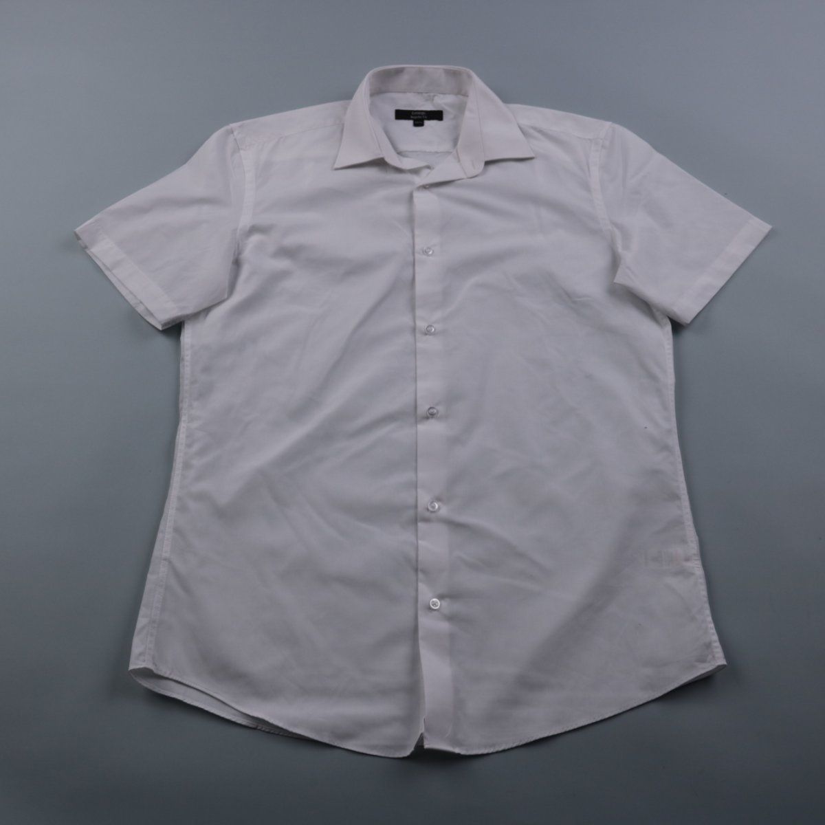 Мужская рубашка George Regular Fit белого цвета с коротким рукавом и классическим воротником на пуговицах. Подойдёт для офиса, школы или летних образов в стиле smart casual. Смесовая ткань хлопок/полиэстер меньше мнётся и проще в уходе.