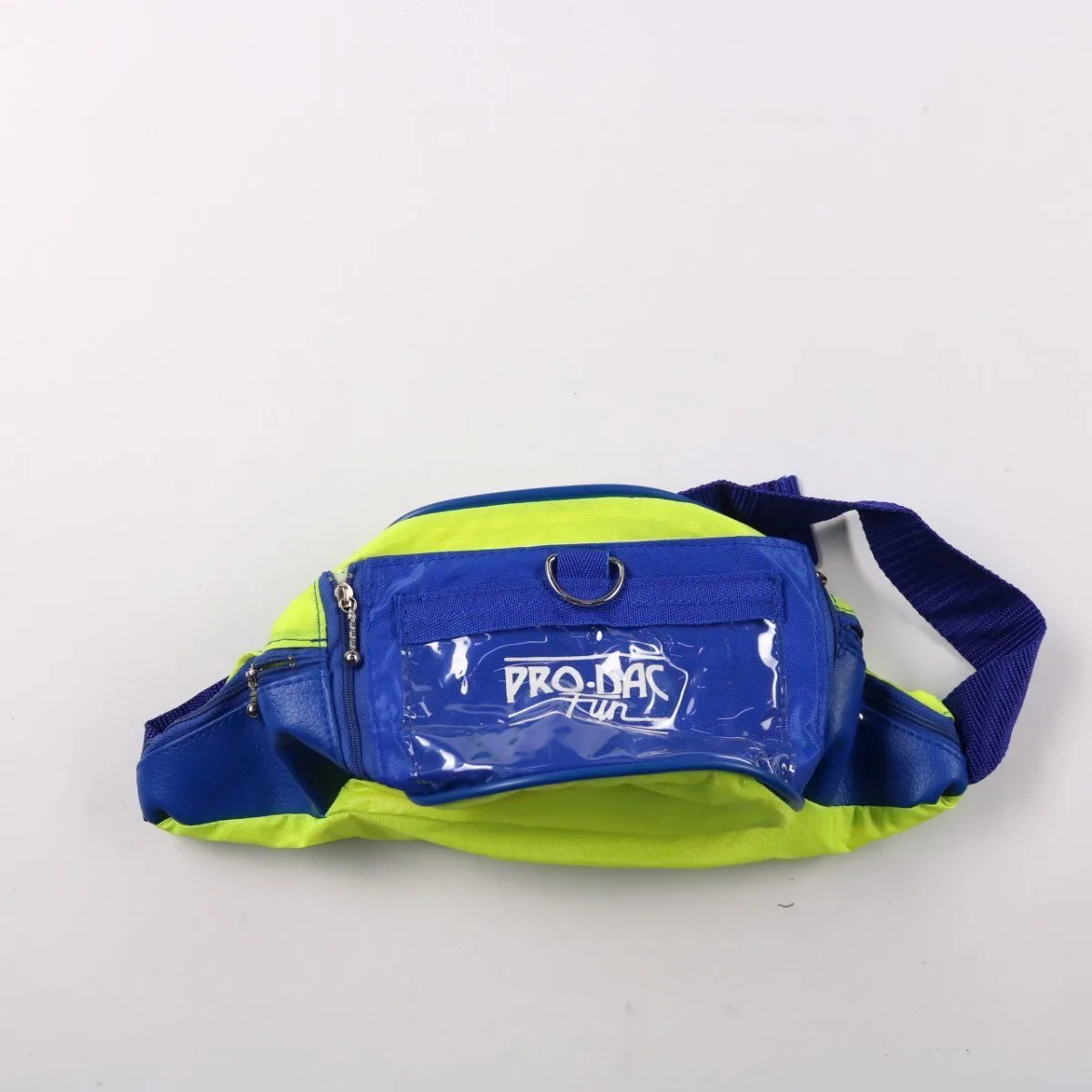 Поясная сумка Pro-Dac ярких сине-лаймовых цветов с несколькими отделениями на молниях и прозрачным карманом спереди. Подойдёт для прогулок, поездок и активного отдыха, когда нужно держать вещи под рукой. Регулируемый ремень с фастексом удобно фиксируется на талии или через плечо.