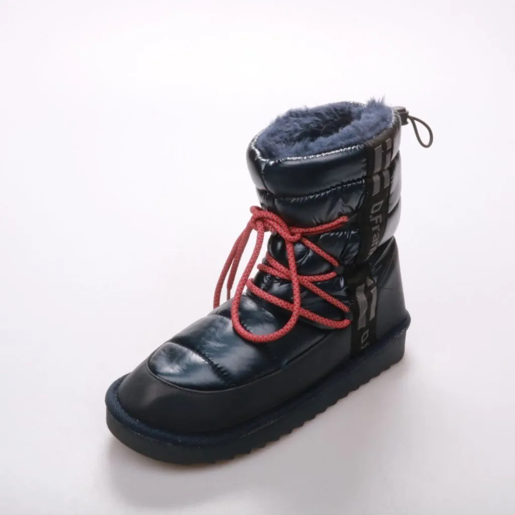 Зимние дутики D.Franklin в тёмно-синем цвете с мягкой меховой подкладкой и красной шнуровкой. Подойдут для прогулок в холодную погоду и слякоть благодаря утеплению и высокой посадке. Рифлёная подошва обеспечивает более уверенное сцепление на скользких ...
