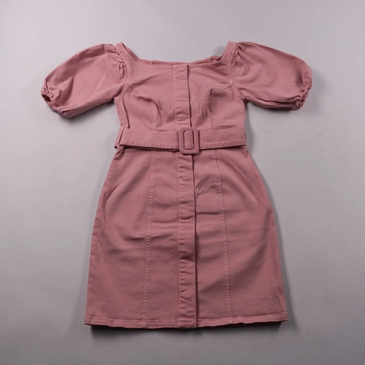 Повседневное платье NA-KD пыльно-розового цвета с квадратным вырезом, рукавами-фонариками и поясом с пряжкой. Подойдёт для прогулок и летних выходов, хорошо смотрится с кедами или босоножками. Плотный хлопковый материал держит форму и комфортен в носке.