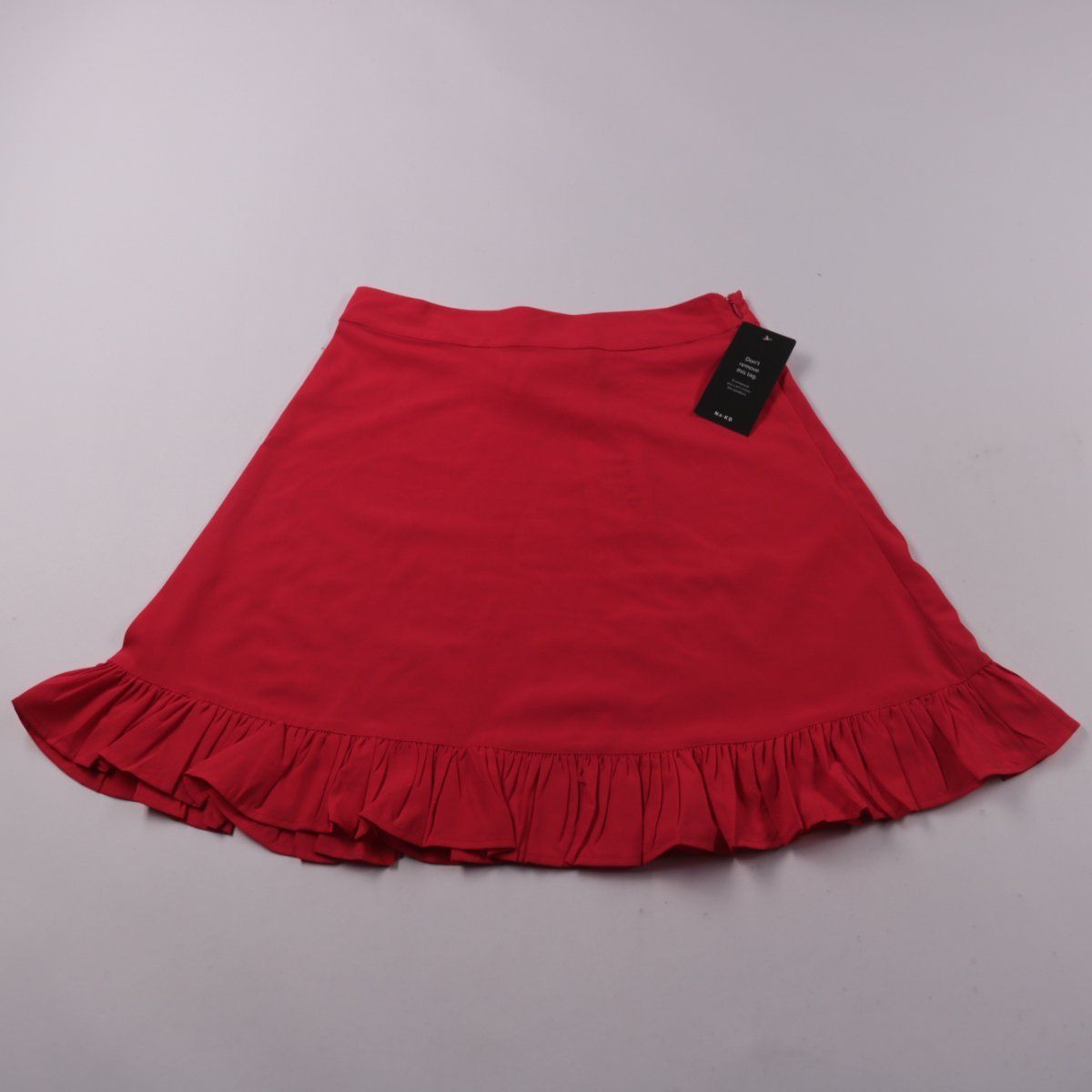 Женская красная юбка NA-KD с оборкой по низу и боковой молнией. Подойдёт для летних образов и прогулок, хорошо сочетается с базовыми топами и блузами. Ткань из полиэстера меньше мнётся и быстро сохнет.