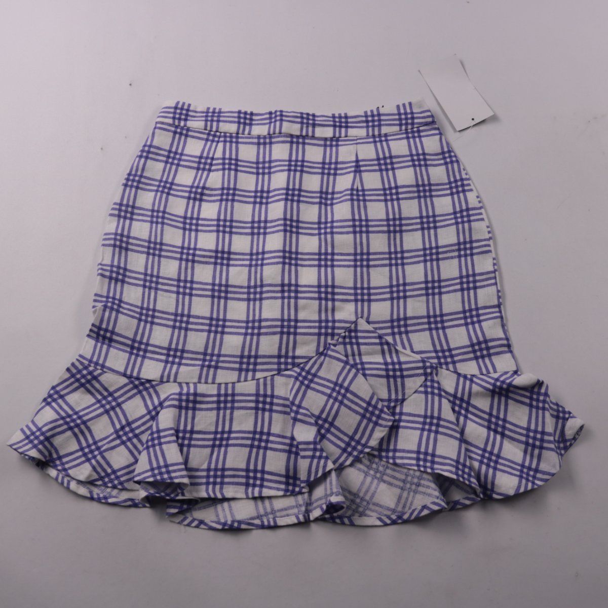 Юбка NA-KD в бело-синюю клетку с воланом по низу и хлопковой подкладкой. Подойдёт для летних прогулок и отпусков, легко сочетается с базовыми топами и рубашками. Льняной верх хорошо дышит и комфортен в жару.